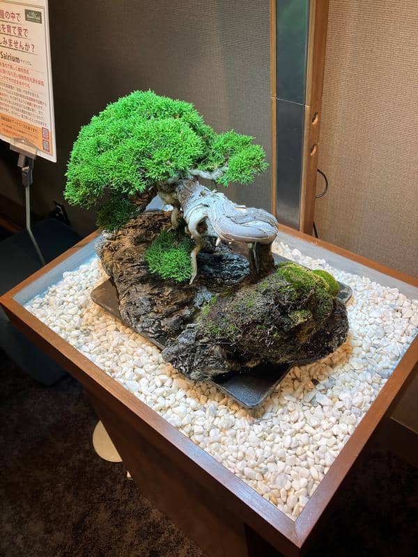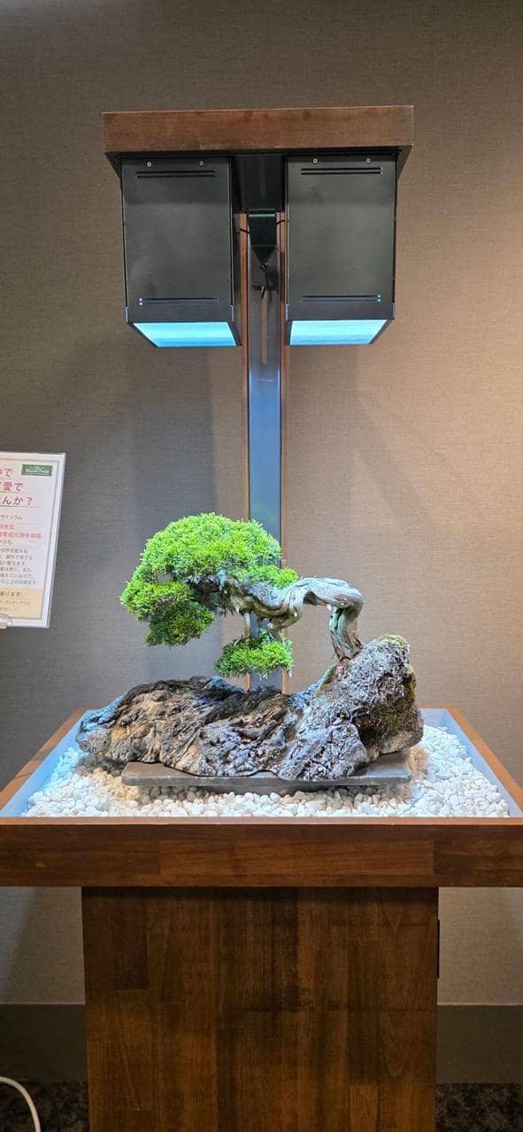 名古屋三越様のお得意様サロンに入れさせていただいたサイリウムの盆栽、 4月30日に交換した真柏が一度も外に出すことなく、凡そ6ヶ月が経ちました。全く窓の無いサロンで真柏は、 葉がとても綺麗で中までしっかり育っています。 名古屋三越のスタッフさんが毎日水やりをしてくれ、 1ヶ月に1度、盆栽いくまさんがお手入れに伺っています。 特許の光源で葉焼けも徒長もなくその美しさをずっと維持しています。