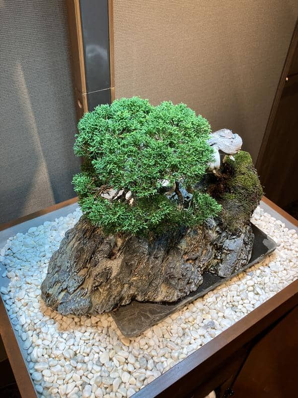 サロンに展示してちょうど6ヶ月が 経過しました。自然光がゼロの室内で樹齢70年の真柏は真に美しい状態を保ちながら成長しています。