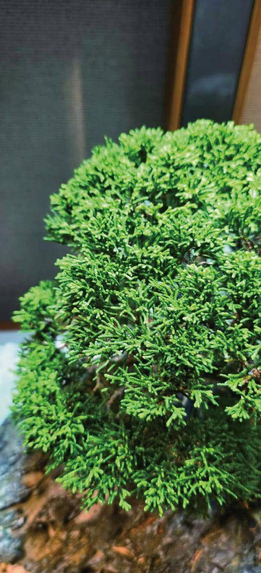 2025年11月6日 名古屋三越さんのお得意様サロンに展示中の真柏が6ヶ月を越えました。 その間、ただの1度も陽の光には当たっていません。 お手入れに行っていただいた盆栽いくま 八代さんが送ってきてくれたコメントと画像です。